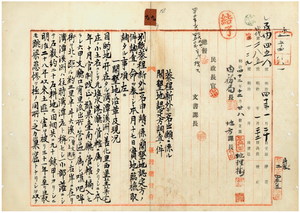 九 元塩水港庁管内ノ李元興・陳梅・李進福・陳閙豹・蔡程新・蔡元合・李保順・曽井・李清冶・李水・林山落・江環ヨリ出願ノ台南庁湾潭渓州所在ノ開墾地業主権認定方ニ付キ調査復命ノ件