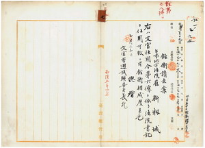 七 文官特別任用令第六条ニ依リ覆審法院石井常英ヨリ照会ノ台南地方法院雇新籾城ヲ法院書記属ニ任用スヘキ旨文官普通試験委員長宛銓衡請求ノ件