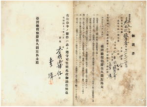 請書綴・嘉義庁大目根堡内埔仔庄ノ李清、同庁同堡緞厝リョ庄ノ李番、李仲、李海、李仲・李清・李海、李取、李蒼、李田、李万、李条、李中元、李金佳、李尼、李元、李監、李過枝、李悪、李添、李青番、李樹、李氷川、李為、李天梓、李開鴻、李傑、李丁・李蒼、李雅、陳煥、陳文砥、陳安、陳蒼、陳宅、陳石頭、陳西露・陳宅・陳蒼、陳進生、陳水木、陳結、陳蒼・陳鳳・陳隣、陳隣、陳鳳、陳西露、黄朗、黄箱、黄新徳、黄新徳、黄本、黄来、林天送、林寄、林祥、林老彭、郭忠、許煙、許得、葉丁旺、許添丁、許文清、許烏番、羅英、朱坤龍、朱炎、邱伝才
