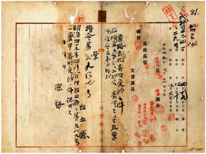 一 台北庁長井村大吉ヨリ稟申ニ係ル広島県豊田郡東野村衆議院議員望月奎介ノ台北庁大加蚋堡台北城内府前街ノ建物土地ヲ道路敷地トシテ寄附ニ付キ受納方認可ノ件(指令第二九四七号)