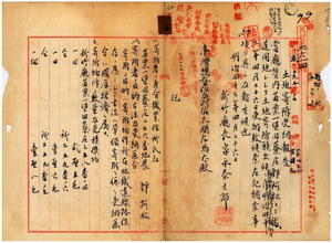 三 新竹庁長家永泰吉郎ヨリ同庁管内苗栗一堡田リョ庄ノ鄧阿松ノ田ト畑地ヲ鉄道用土地トシテ寄附方受納ニ付キ報告ノ件
