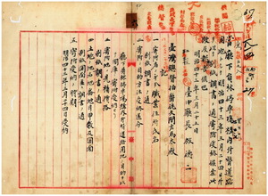 六 台中庁長枝徳二ヨリ同庁下員林停車場構内付替道路用地トシテ燕霧下堡員林街ノ田ニ付キ張側陽管理人張水治・張呆、呉賓、張水生、黄品、張本、共業ノ江万得・江秋陽・江丹煌ヨリ寄附方願出タルニ依リ受納シタル旨報告ノ件