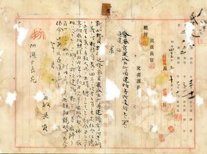 九 阿緱庁長佐藤謙太郎ヨリ同庁潮州支庁新北勢警察官吏派出所所用ノ土地建物トシテ同庁港西下里新北勢庄ノ保甲民会議場ヲ寄附スルモノトシテ同庁同里新北勢区民総代新北勢区庄長陳経奎ヨリ同建物敷地ヲ願出タル件並ニ同庁東港支庁林仔辺警察官吏派出所所用ノ土地建物トシテ同庁港東中里林仔辺庄ノ簡清ノ土地ト同里林仔辺区民共有建物及ヒ附属建物ニ付キ林仔辺区民総代ノ鄭徳生・□友・林三・阮賜・林俊・林坤・○○春、李乞食ヨリ寄附ヲ願出タル件ニ関シ前者ノ新北勢警察官派出所土地建物寄附受納ニ対シテハ同施設ハ庄民一同ノ施設ニアラスシテ保正