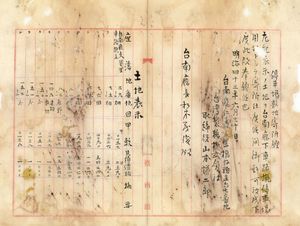 一八 台南庁長松木茂俊ヨリ稟申ノ台南庁管内車路茄停車場ノ為メ同庁文賢里車路茄庄ノ田・畑・原野・養魚池等ニ付キ台南庁仁寿下里橋仔頭庄ノ台湾製糖株式会社取締役山本悌二郎等ヨリ寄附サレタルヲ以テ受納シタルニ付キ認可ノ件(指令第一五五号)[本文書破損甚大の為め開披不能委細不明]