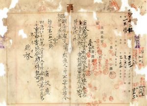 三三 南投庁長久保通猷ヨリ稟申ノ南投庁沙連堡林砥埔街ノ雲林拓殖合名会社代表赤司初太郎ヨリ会社ノ所在地ハ過般特設電話加入区域ニ編入セラレタルニヨリ不用トナリタル該会社ガ林禍埔特設電話用ニ設置シタル電話線路及ヒ背面板付デルビル電話機・十二号形保安器・乾電池等ノ物件ヲ寄附願出タルニヨリ受納方認可ノ件(指令第一五一〇号)