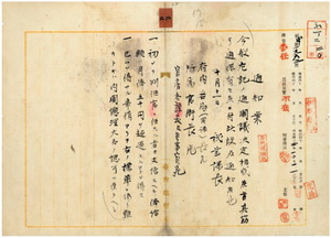 二 初任判任官俸給額ニ付キ閣議決定ノ旨内閣書記官長ヨリ通牒アリタルニ付キ拓殖局秘書課長心得立花俊吉ヨリ台湾総督府秘書課長三村三平ヘ移牒サレタルニ依リ台湾総督府内各局署課長・所属官衙長・官房各課長及参事官ヘ通知ノ件