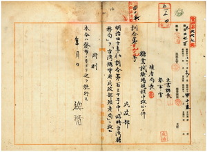 二 明治四〇年七月訓令第一三〇号糖業試験場規程中「臨時台湾糖務局」ヲ「台湾総督府民政部殖産局」ニ改正ノ件(訓令第一九九号)