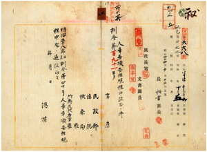 三 明治三八年三月訓令第四〇号人事事項委任規程中第二条中ノ「土木部長」ヲ「工事部長」ニ改メ、第三条中ノ「糖務局長」ヲ削リ「及阿里山作業所長」ヲ「阿里山作業所長及作業所長」ニ改正ノ件(訓令第一九一号)