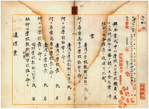 一七 小学校・公学校・国語学校職員辞令書式ノ文例改正ニ付キ各庁長ヘ通牒ノ件