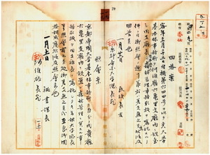一九 京都帝国大学総長男爵菊池大麓ヨリ京都帝国大学基本林事務所ヲ阿緱庁六亀里支庁内ニ設置シ支庁長岡本哲人ニ森林管理事務取扱ヲ嘱託スルニ付キ照復ノ件