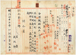 三六 明治四二年一〇月訓令第一五四号台湾総督府官房并民政部各局及蕃務本署分課規程第一四条中ニ港務所ニ関スル事項ヲ加フル件(訓令第一一三号)