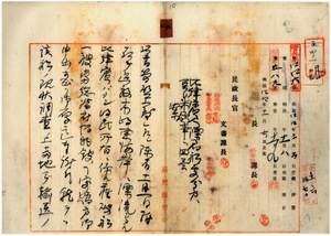 二 本年七月五日ニ台湾東海岸ニ漂着シタル菲律頑人ガ彼等ノフィリピンバタン政府所有ニ係ル難破船ロザリオ号ノ所有権ヲ放棄シタル旨フィリピンバタン州知事ジー・エム・エカン氏ヨリ通知アリタルニ付キ同知事ノ書簡ヲ添付ノ上同船ヲ台湾総督府博物館ヘノ寄附ヲ希望スル旨サミユール・シー・リート米国領事ヨリノ申入レニ対シ回答ノ件(官外第四四六号、10~14)