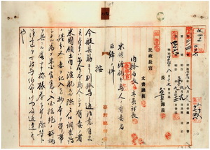 2─2 民政長官内田嘉吉ヨリ拓台往第二一九号ヲ以テ通牒アリタル拓殖局第一部庁宮尾舜治通牒文回付(2─3)ノ件(官外第五号、46)