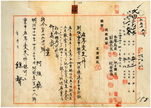 一三 阿緱庁長佐藤謙太郎ヨリノ阿緱庁港東中里田(土+乾)庄土名放索ト林仔辺庄トノ境界変更及ヒ西中里南岸庄打鉄庄トノ所属組替ニ関スル稟申ニ付キ認可ノ件(指令第二九四〇号、阿財直第二四八号、民内第二六一七号、136~139)