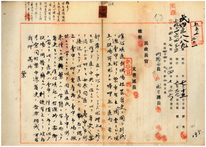 一六 台中庁長枝徳二ノ上申ニ依リ台中庁渓心埧区長役場位置ヲ同庁猫羅堡喀哩庄ヨリ同堡渓心仮庄ヘ変更スルノ件(告示第一〇五号、中庶第三四二号、民内第三八八九号、158~166)