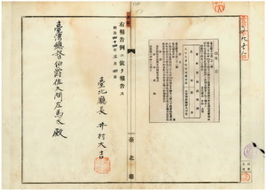 臺北廳告示第二十一號警察官吏派出所名稱位置管轄區域中改正ノ件