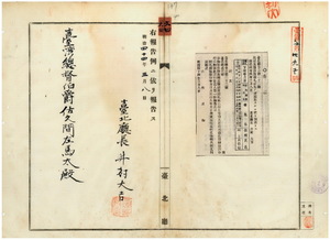 六四 第二二号 台北庁大加蚋堡大稲花北門外街黄番婆ハ食塩請売鑑札紛失ニ付キ該鑑札ヲ無効トス
