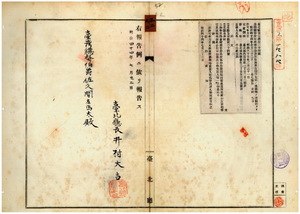 三二 第一二四号 台湾総督府民政部学務課出版図書売捌所ヲ台北城内石坊街ヨリ台北城内撫台街ニ移転シ売捌人ヲ平島辰太郎トスル旨届出ノ件