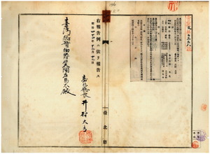 一二〇 第二一二号 台北庁管内ノ基隆堡田藔港庄大川甲助ノ日本形艀船・八里坌堡大八里戒庄陳太平ノ支那形船ノ船鑑礼遺失ニ付キ該鑑札ヲ無効トス