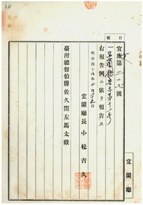 宜蘭廳告示第十一號德島縣ニ於テ秩祿處分請願ノ證據書類中居所不明ノ為交付不能ニ關スル件