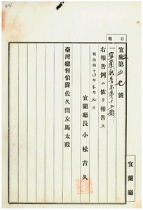 一五 第一五号 明治四三年二月宜蘭庁告示第九号貸座敷営業指定地制定中改正ノ件
