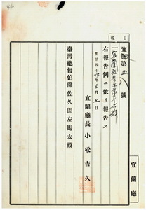 宜蘭廳告示第十六號阿片煙膏購買吸食特許鑑札並通帳無效通知ノ件