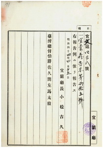宜蘭廳告示第二十五號臺北廳ヨリ豚虎列剌發生通知ノ件
