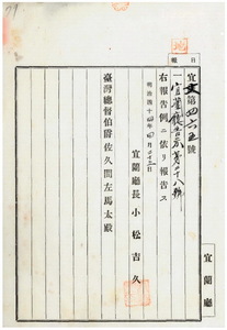 宜蘭廳告示第二十八號阿片煙膏購買吸食特許鑑札並通帳亡失ノ旨臺南外三廳ヨリ通知ノ件