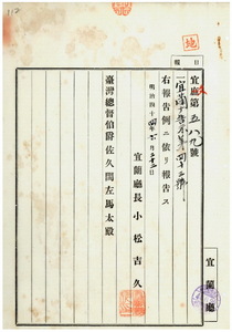 四三 第四三号 宜蘭庁員山堡内員山庄簡賢ハ支那形繻船ノ船鑑礼紛失ニ付キ該鑑札ヲ無効トス