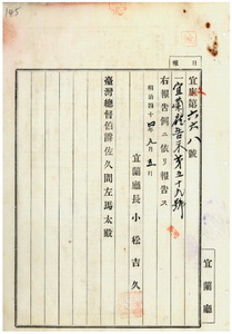 宜蘭廳告示第五十九號阿片煙膏購買吸食特許鑑札同通帳亡失ノ件