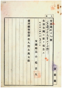 宜蘭廳告示第六十三號獸肉營業許可證亡失ノ件