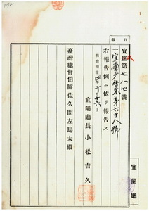 宜蘭廳告示第六十八號阿片煙膏購買吸食特許鑑札同通帳亡失ノ件