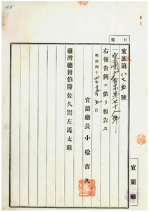 宜蘭廳告示第七十八號阿片煙膏購買吸食特許鑑札同通帳亡失ノ件