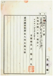 八二 第八二号 宜蘭庁管内ノ頭囲公学校ノ明治四四年度歳出予算中更正ノ件