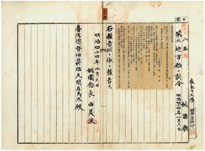 一〇五 第七号 明治四二年一一月桃園庁訓令第二〇号庁事務分課規程施行細則中改正ノ件