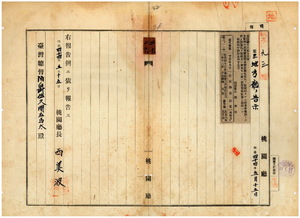 二六 第五〇号 桃園庁管内ノ陳和福ハ阿片烟膏購買吸食特許鑑札遺失ニ付キ該鑑札ヲ無効トス