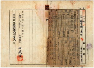 四五 第六九号 桃園庁管内ノ南崁公学校・八塊厝公学校ノ明治四四年度歳入歳出予算中更正ノ件