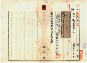 新竹庁・嘉義庁・台南庁・阿緱庁・台東庁・花蓮港庁ノ庁令供閲ノ件新竹庁・嘉義庁・台南庁・阿緱庁・台東庁・花蓮港庁ノ庁令供閲ノ件