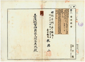 一三二 第三九号 台中庁捒東上堡ノ葫芦墩街・社口庄・大社庄ヲ豚疫流行地ト認メ物品ノ搬出停止ノ件