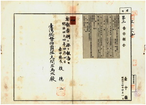 二 第七二号 台中庁管内ノ牛罵頭公学校明治四三年度歳入歳出予算追加ノ件