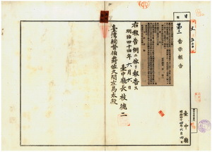 五七 第一二七号 台中庁捒東上堡社口庄・大社庄ニ流行シタ豚虎列剌熄滅ニ付キ豚畜ノ牽出往来並ニ病毒伝播ノ虞アル物品ノ搬出停止シタル処置ヲ解除ス