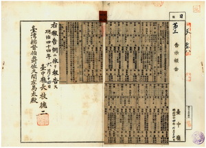 七五 第一四五号 台中庁管内ノ蔡朝枝・林昌・劉秋金・陳坤旺・張池・蔡薀・蔡標・葉氏燦・顔泗・劉阿福・戴富・梁海子・張頭・張扁ハ阿片烟膏購買吸食特許鑑札並ニ阿片烟膏購買通帳ヲ、詹維・朱徳勝・謝允定ハ同鑑札ヲ、黄連・謝道隆ハ同通帳ヲ亡失ニ付キ該鑑札及ヒ通帳ヲ無効トス