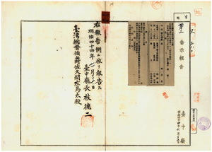 七七 第一四七号 台中庁捒東下堡上楓樹脚庄張秋漢、藍興堡台中街ノ伊予甲吉・半田万太郎ハ自転車鑑札遺失ニ付キ該鑑札ヲ無効トス