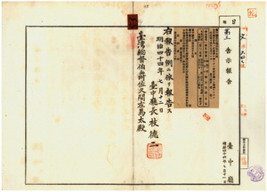 八九 第一五九号 新竹庁竹北一堡十塊藔庄謝添才ノ支那形船金進財ノ船鑑札紛失ニ付キ該鑑札ヲ無効トスル旨同庁ヨリ通知ノ件