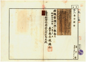 一一六 第一八六号 新竹庁竹北二堡坑仔口庄羅安ノ支那形船得利号ノ船鑑札流失ニ付キ該鑑札ヲ無効トスル旨同庁ヨリ通知ノ件
