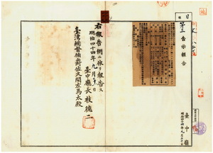 一一九 第一八九号 台南庁効忠里安平街陳五個ノ支那形船金明成・台南市海安宮街顔良ノ支那形船手梯・大竹里苓雅藔庄陳中和ノ支那形船南成ノ船鑑札流失及ヒ紛失ニ付キ該鑑札ヲ無効トスル旨同庁ヨリ通知ノ件