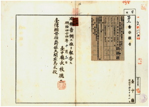 一二五 第一九五号 嘉義庁管内ニ牛疫発生ニ付キ同庁ヨリ通報ノ件