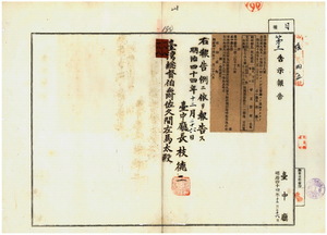一八八 第二五八号 宜蘭庁頭囲堡亀山庄藍四宝ノ支那形船金振発ノ船鑑札流失ニ付キ該鑑札ヲ無効トスル旨同庁ヨリ通知ノ件