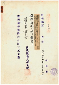 三三 第一七号 嘉義庁管内ニ牛疫発生ニ付キ旨同庁ヨリ通知ノ件