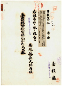 南投廳告示第六十三號臺中廳ヨリ豚虎列剌熄滅物品ノ搬出入解停通知ノ件